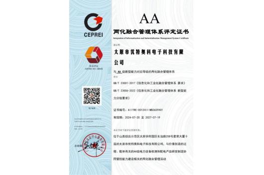 近日,我公司正式獲得兩化融合管理體系A(chǔ)A級(jí)評(píng)定證書(shū),標(biāo)志著在信息化與工業(yè)化融合方面取得顯著進(jìn)展。此次評(píng)定嚴(yán)格按照國(guó)家標(biāo)準(zhǔn),歷經(jīng)多個(gè)環(huán)節(jié),最終順利達(dá)標(biāo)。