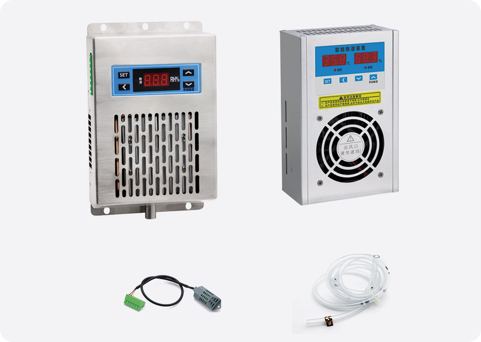 AP322系列智能型除濕裝置是采用半導(dǎo)體制冷除濕方式,主動將密閉空間的潮濕空氣在風(fēng)扇的作用下吸入除濕風(fēng)道,空氣中的水汽經(jīng)過半導(dǎo)體制冷機構(gòu)后冷凝成水,再通過導(dǎo)水管排出柜體,可以達(dá)到很好的除濕效果。通過減低空氣中含水量,使相對濕度和絕對濕度同時下降,幾乎不提高溫度,不產(chǎn)生溫差帶來的負(fù)面影響,減少了事故的發(fā)生,也不會因高溫而加速柜內(nèi)器件及柜體的老化。智能型除濕裝置把被動防止凝露方式改為主動引導(dǎo)凝露,有效的防止柜內(nèi)設(shè)備老化、絕緣強度降低、二次端子擊穿、材料霉變及鋼結(jié)構(gòu)件銹蝕等安全隱患,保證電網(wǎng)安全運行。